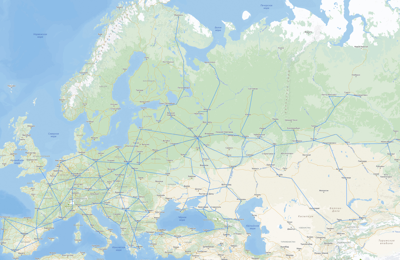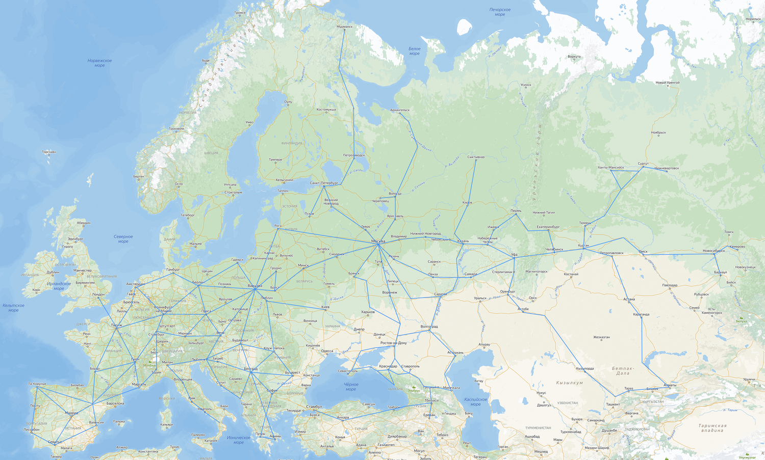 Москва, Санкт-Петербург, Мурманск, Псков, Архангельск, Сыктывкар, Казань, Пермь, Екатеринбург, Сургут, Новосибирск, Уфа, Самара, Саратов, Волгоград, Астрахань, Махачкала, Воронеж, Ростов, Ставрополь, Краснодар, Сочи, Севастополь, Курск, Белгород, Смоленск, Калининград и другие
